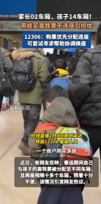 据经视直播开云体育,近日,有网友反应春运时辰我方与孩子的高铁票被分拨至不同车厢。该网友示意,受余票殷切影响,系统将其座位分拨在02车厢14B号,而儿子则被分拨至14车09C号,两座相隔十多个车厢,照管未便。