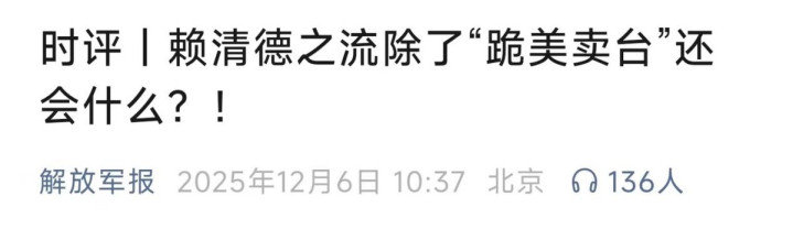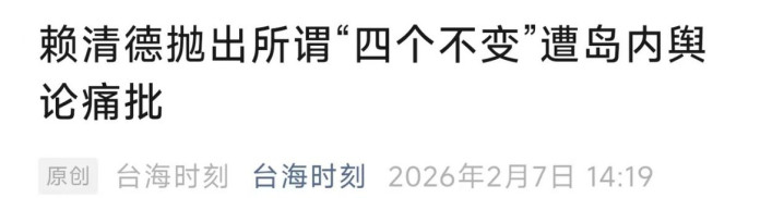 《赖清德抛出所谓“四个不变”遭岛内舆:论痛批》