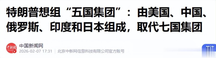 中国新闻网——特朗普想组“五国集团”:由好意思国、中国、俄罗斯、印度和日本构成,取代七国集团 2026-02-07