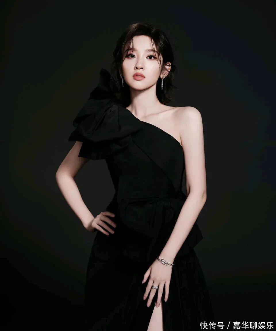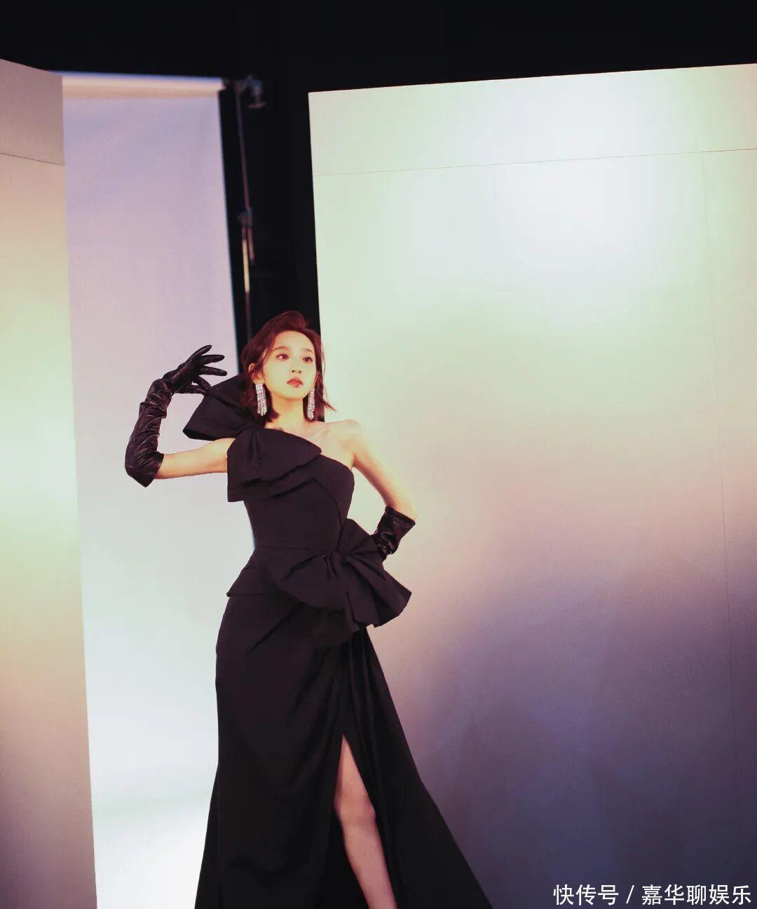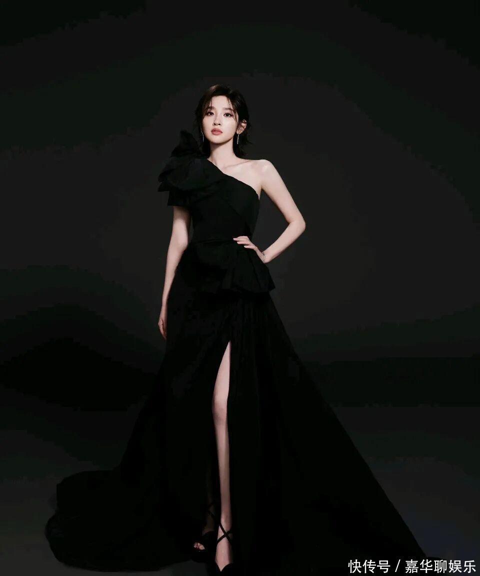 若是说第一套是甜妹的极致发达,那这套黑裙造型,即是唐艺昕透顶冲破立场标签的惊艳之作,冷艳、高等、气场全开,完全是不相通的面目。