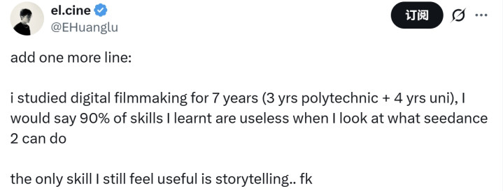 在应对媒体X上,AI影视创意内容范围最为活跃的创作家之一“el.cine”,一忽儿哭笑不得地爆发出了一阵哀嚎。