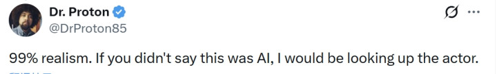 “99%传神。淌若你没说这是AI,我齐要去查演员了。”