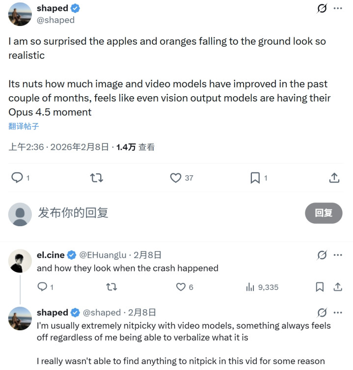 好意思国AI检修数据初创公司Parsewave的蚁集创举东谈主在不雅看后咋舌:“我太骇怪了,苹果和橙子掉落在地上的遵循看起来如斯传神……我对AI视频向来极其抉剔,但这个片断,我的确挑不出任何舛误。”