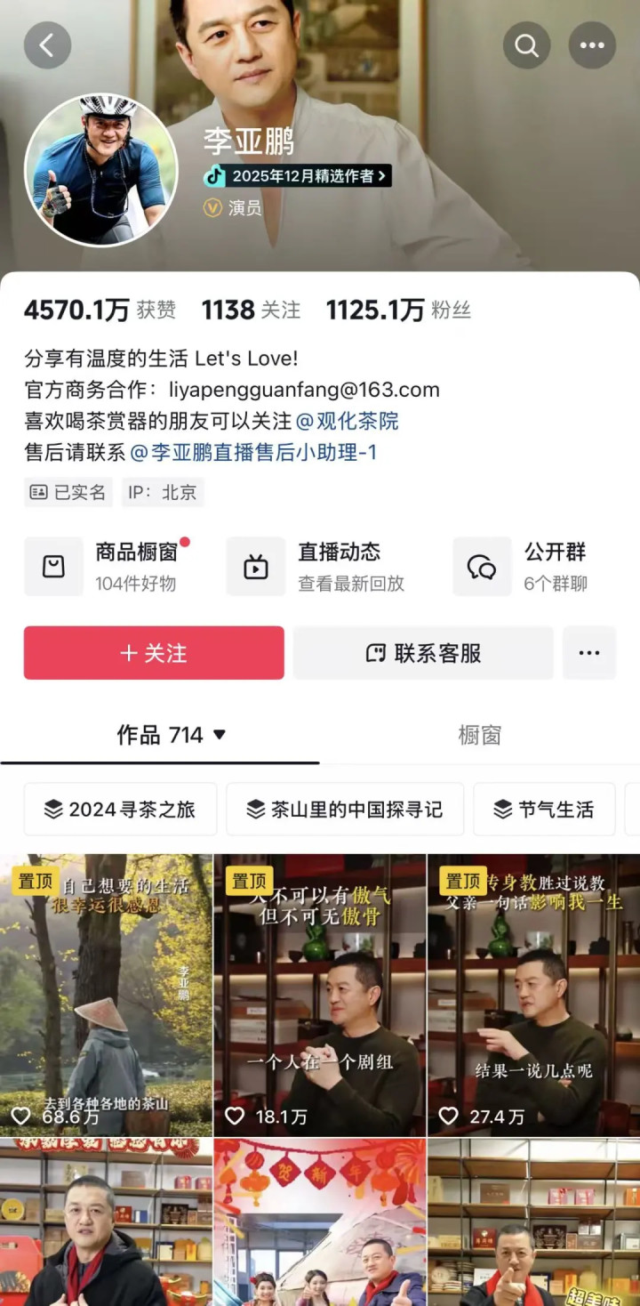 李亚鹏带货执续大火。2月6日和7日,李亚鹏开了两场直播,销售额双双破亿元。第三方平台数据傲气,最近30天,李亚鹏共直播13场,场均销售额5000万至7500万元,最近10天内3场销售破亿元。其中,1月30日,李亚鹏开播10分钟就涌入超40万不雅众,单场增粉超30万;最终销售额超1.8亿元,登顶平台带货总榜,并以普洱茶专场创下行业记载,居抖音年货榜榜首。