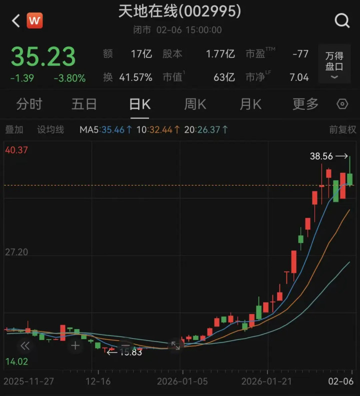 自1月19日起,六合在线10个交游日斩获了6个涨停板,限制2月6日,年内已累计飞腾113.26%。