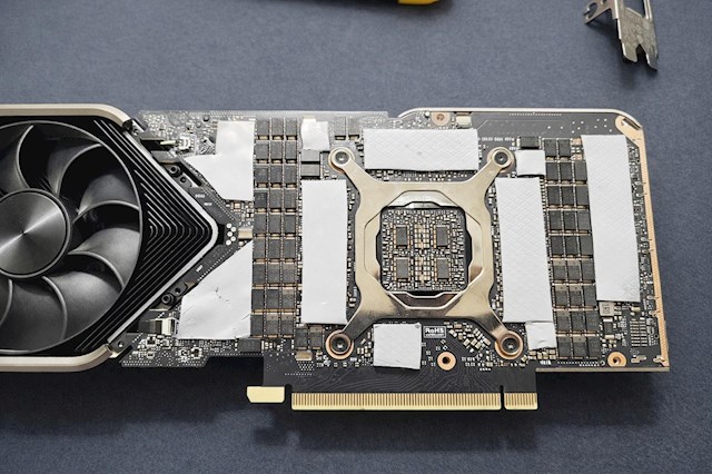 显存位多达20个,正反各一半,每颗1GB构成共计20GB。留心还有四个空焊位。