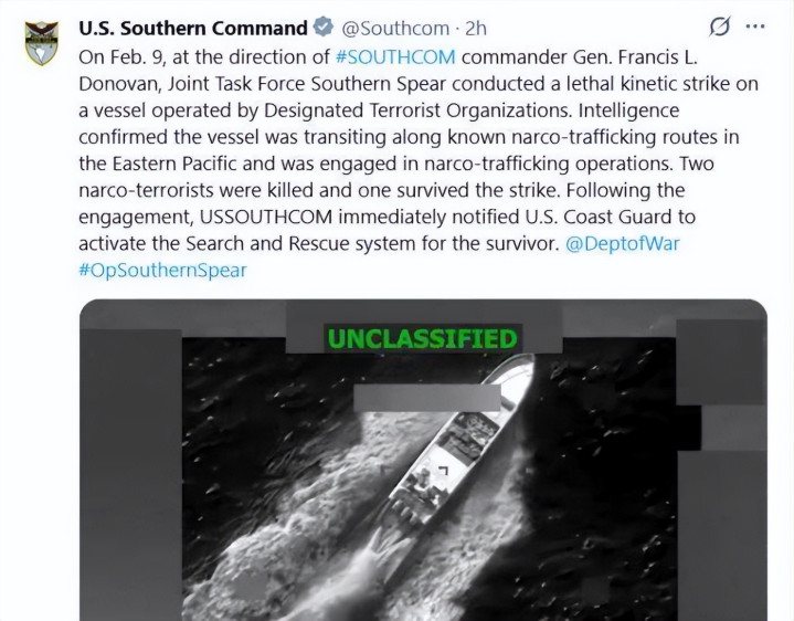 好意思军称在太平洋费事一艘“贩毒船”打死2东说念主——光明网2026-2-10