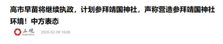 2月8日,高市早苗在日本电视台的节目里那口角凡高调,张口就来,说她阿谁政府正在勤恳营造一个“有时杀青参拜靖国神社的环境”。