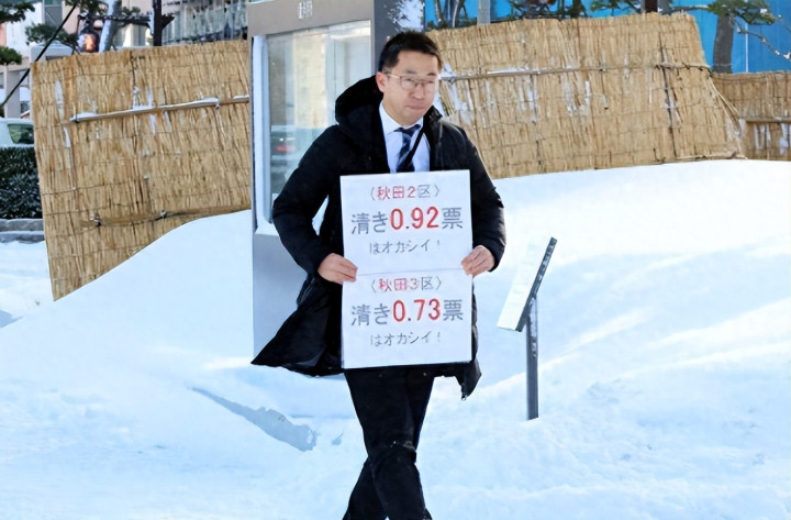 记者拍到,讼师小川直文在秋田分院外采访时怒怼选举轨制,接地气来说即是:“宪法写着公民对等,选票却分三六九等,有的值钱有的不值钱,这分明是诓骗东说念主、违宪!”