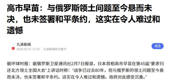你认为光是在历史问题上搞搞小动作就完事了?那你就太小看高市早苗的贪念了。就在大选前一天,她还隔空对着俄罗斯喊了一嗓子。