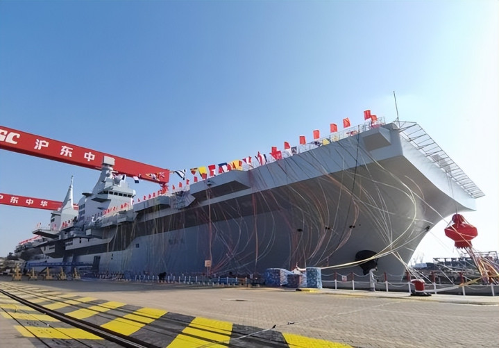 福建舰2022年6月下水,2024年试航,2025年11月5日入伍,排水量8万吨,用电磁弹射器。福建舰配双波段雷达,预警强,能指点电子战。三艘航母让舟师有远海空中力量,编队巡航西太平洋。
