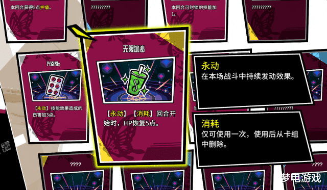 玩家的护盾取得技术极为珍稀,主要来源于每回合三选一的祝愿成果,且数值较低:血条HP共有300关联词护盾的数值仅有3到6点,以致还仅仅局内的祝愿一次性成果。