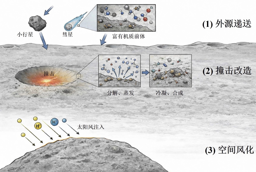地球上最早的有机质起首于“天际”?这些笔据在地球上或者早就无处寻觅,但在月球上却可能有所留存。在我国嫦娥五号、嫦娥六号月球探伤器带回的月壤样品中,科学家不仅发现了多种含氮有机质,还识别出太阳风注入的信号。联系论文4月9日发表于国外学术期刊《科学发扬》。